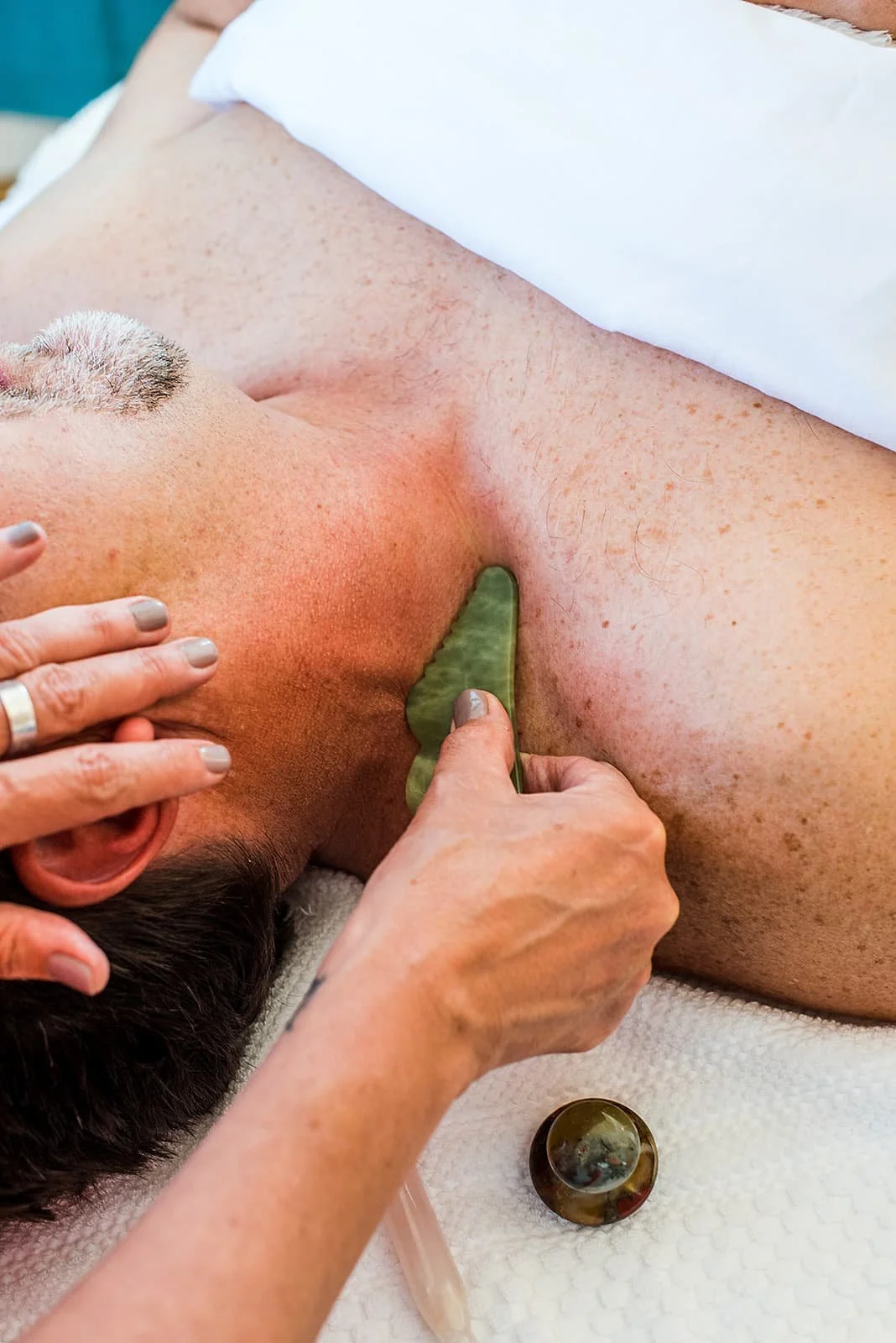 We’ve never met a person who didn’t looooove fire cupping. USA Olympic swimmers might have made this therapeutic intervention famous, but it’s been used in Traditional Chinese Medicine for thousands of years. Oxygen is pulled from the cup using a flame, then the cup is placed on aching tissue to release fascia, ease muscle tension, boost circulation, and move lymphatic stagnation. It feels ah-maaaazing. This is a great option for some of our pain patients, including the never ending “I hold my tension in my neck and shoulder” folks.